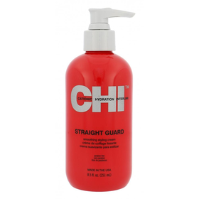 - Απλώστε μικρή ποσότητα της CHI Straight Guard σε νωπά μαλλιά.